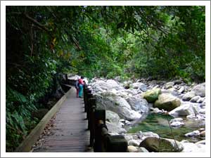 蓬萊自然生態園區 蓬萊溪為中港溪的上游河流,晶瑩清澈的溪水自山谷中蜿蜒而下,沿著護魚步道而上沿岸豐富的植物與昆蟲把整個溪谷鬧的多采多姿,溪中更可見澤蟹在岩縫忙碌覓食苦花馬口魚在水中發出閃閃銀光,目前已成為鄉內重要觀光景點。 蓬萊溪自然生態園區沿著蓬萊溪岸闢建了一條長約2.4公里的觀魚步道,隨著溪岸的地形,或鋪枕木,或架棧道,或鋪架木橋越過險阻,或利用溪邊石塊砌成簡易的石階。 步道全程路況佳,走在其間,有溪流淙聲悅耳,有魚群悠遊悅目,可說是一條令人心曠神怡的觀魚步道。 |